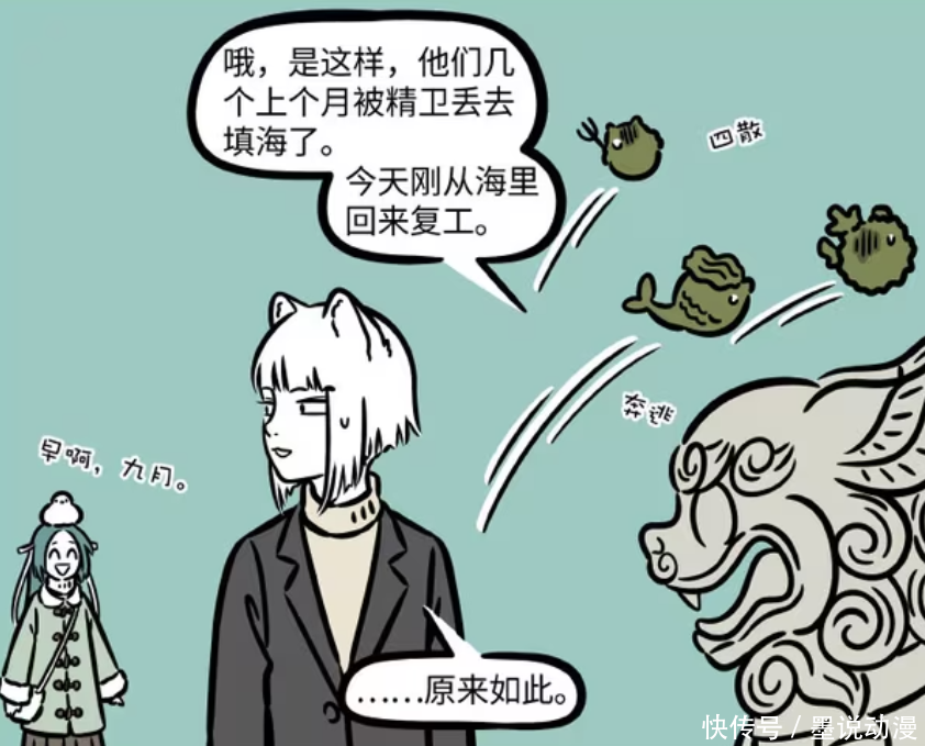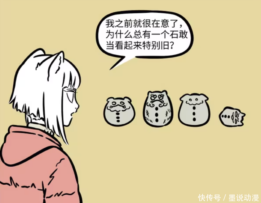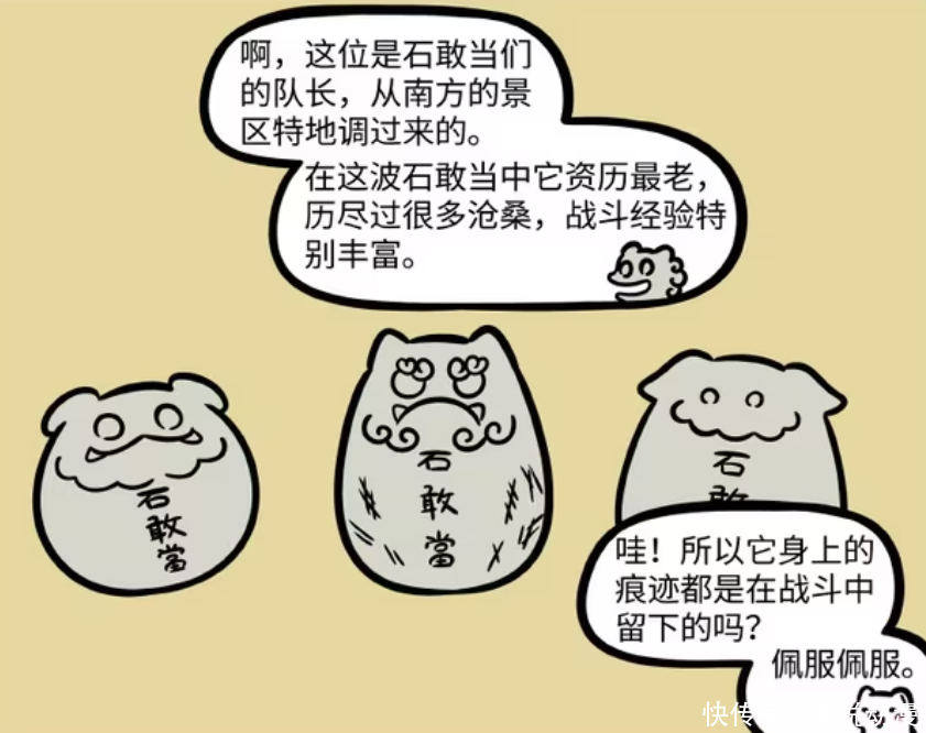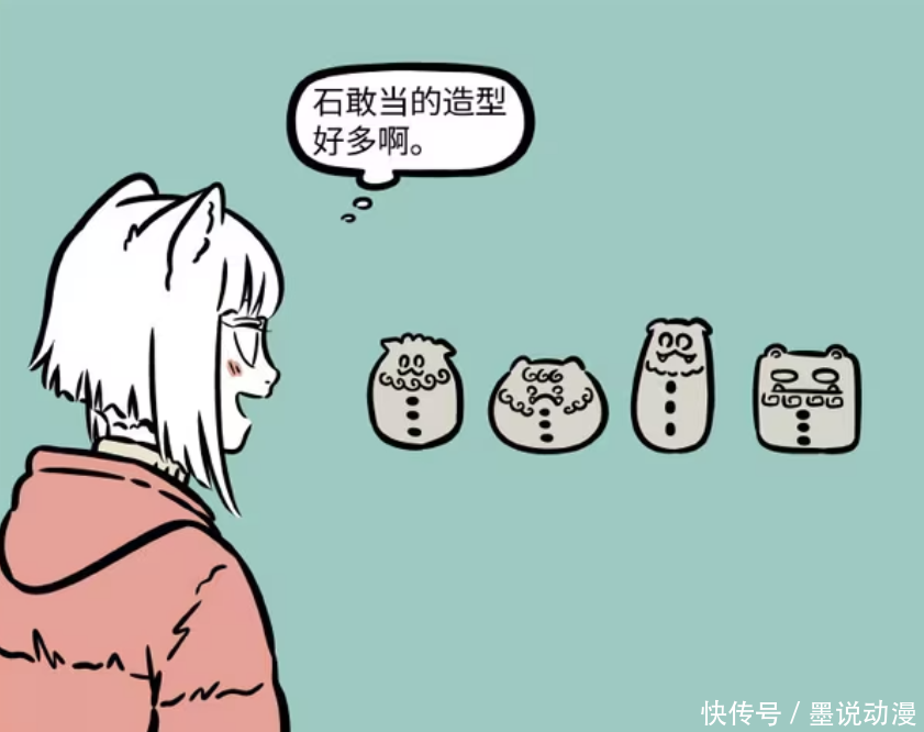 《非东谈主哉》漫画版中,石敢当们的故事很道理道理,他们除了会驱邪和打击作歹以外,还有着多种造型。九月频频会看到他们变化,不外有一批石敢当比拟稀奇,他们王人是海洋为止款,那么为何会如斯?本来是精卫拿去填海。另外还有个石敢当队长,他看起来最为破旧,那是因为还是在景区任职过,背后王人是笔迹。