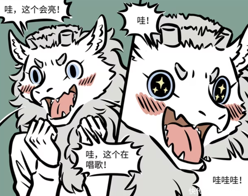嗅觉敖烈就像没见过世面的东谈主,看到什么齐酷爱、吃惊、念念要。敖烈发现这个会唱歌,阿谁会亮。电器城就像是新寰宇同样,哪哪齐新奇。此时的敖烈还是那么灵活无邪,早已健忘断角的事情。