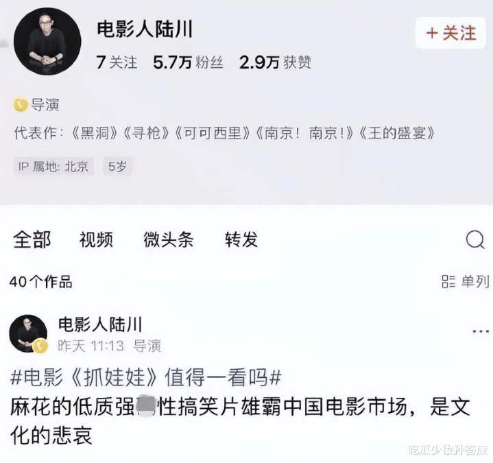牵挂起本年7月17号那天,陆川倏得在个东说念主酬酢媒体上开炮,把茂盛麻花出的电影贬得一文不值,说是文化界的玷污。