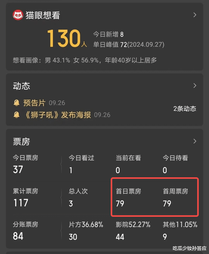 《狮子吼》挑的上映本领,简直是自掘茔苑。你看,哪个智谋片子不是挤在9月30日或者10月1日这两天黄金档,好趁着国庆假期全球王人有空,赶快刷个存在感。