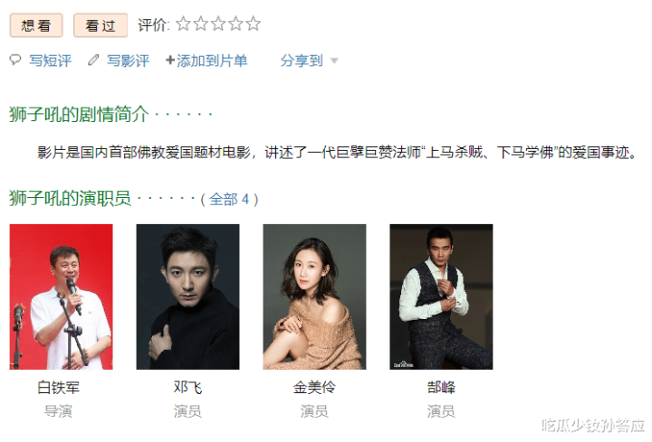 此外,影片未能邀请到著名演员加盟,这无疑是其宣传上的一大软肋。在目下这个短视频盛行的期间,如果影片能够借助明星的影响力,在短视频平台上进行一波有劲的宣传,大略能够蛊惑更多不雅众走进电影院。但是,《狮子吼》却未能收拢这一机遇,导致其最终堕入了无东说念主问津的窘态境地。
