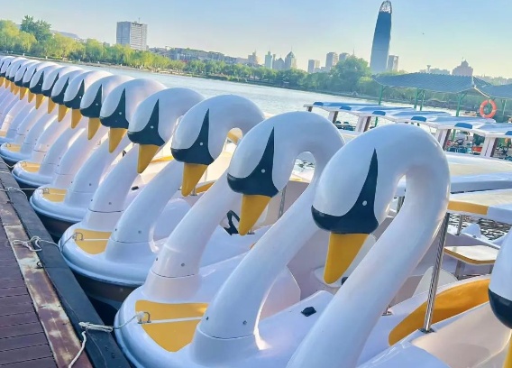 除了乘坐古色古香的画舫游船,在大明湖体验自驾游船的乐趣亦然可以的选择。五一假期,大明湖游船再次上新,“天鹅”造型的自驾电瓶船将崇拜参加运营。在铁公祠船埠,有小黄鸭、大熊猫、白鹭、天鹅等多种卡通款式自驾船供公共选择,宽宥强大市民搭客来到大明湖景区开启“自驾游湖”新体验。