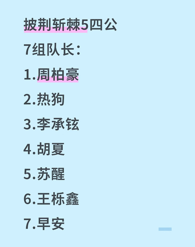 从传出第四轮舞台公演分红七大部落的音问上看,节目组应该是看到网友们的提出,把柄知情东说念主士显露,七大部落的队长也曾笃定,离别是:周柏豪、热狗、李承铉、胡夏、苏醒、王栎鑫、晨安。