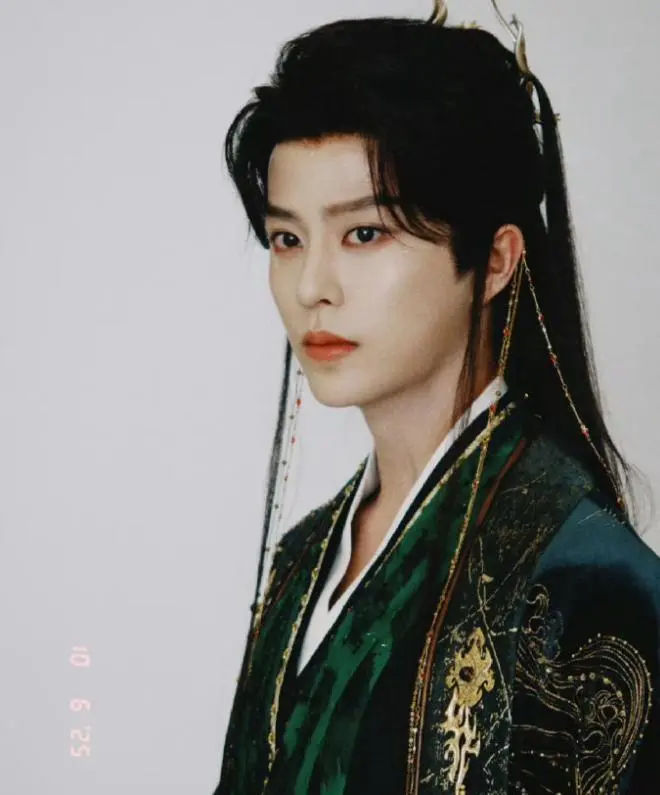 刘润铭的另一套龙须刘海的造型很有古典好意思东说念主的质感,倒是和任嘉伦在《良伴天成》中的古装束相有点像。