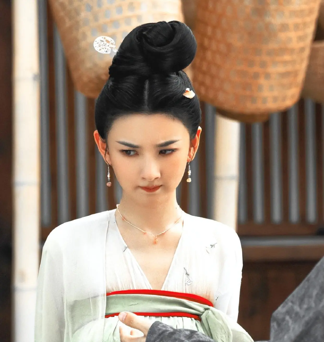 个东说念主以为岳雨婷的唐风大花造型和鞠婧祎在《月鳞绮纪》中的唐风造型险些莫得什么辩认,仅仅短剧的变装妆容不如长剧淡雅。