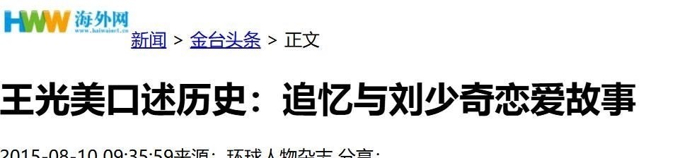 参考贵府:国外网——王光好意思口述历史:追念与刘少奇恋爱故事 2015-08-10