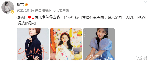 之前杨雪庆生时就有提到袁泉还有颖宝,她默示:“怪不得咱们秉性有点点像,正本是消释天的”,在这里道喜三位好意思女姐姐寿辰快乐啊。