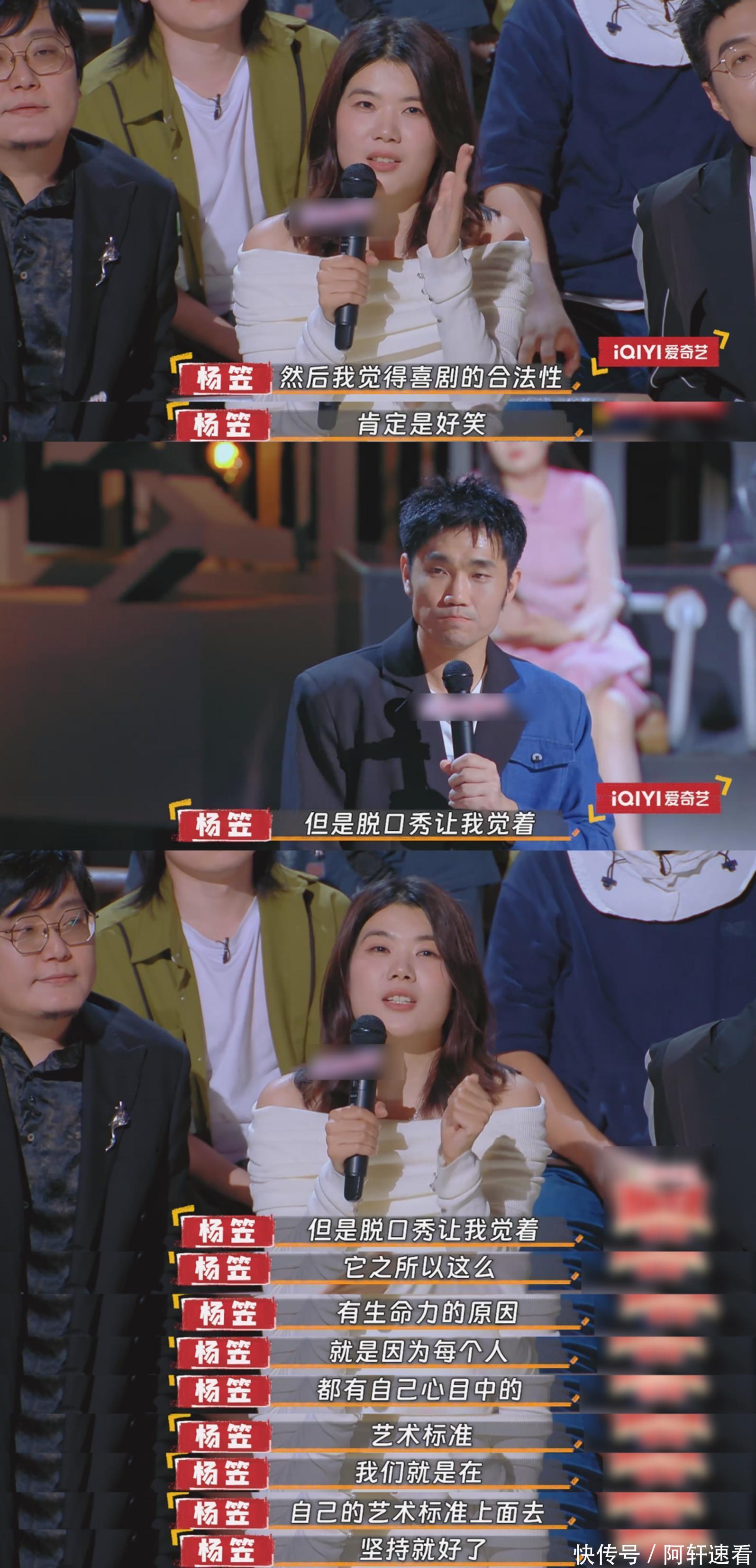 但愿杨笠的回答他是确切听进去了。杨笠说:“我合计笑剧的正当性细目是可笑,但是脱口秀让我觉着,它之是以这样有人命力,即是因为每个东说念主都有我方心目中的艺术门径,咱们即是在我方的艺术门径上头去坚握就好了。”