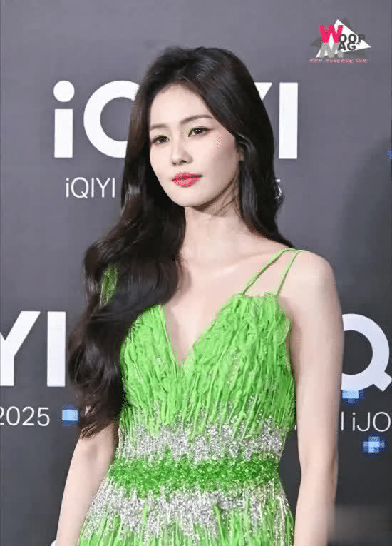 V领绸缪精巧地展现了她的颈部线条,而裙摆的开叉则若有若无地显现了修长的双腿,好躯壳一望普遍。为了与裙子相呼应,白鹿的眼影和鞋子也采选了绿色,合座造型相助和解,充满了视觉冲击力,明媚而裕如人命力。