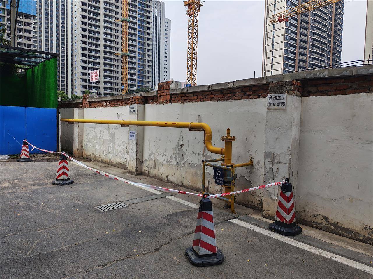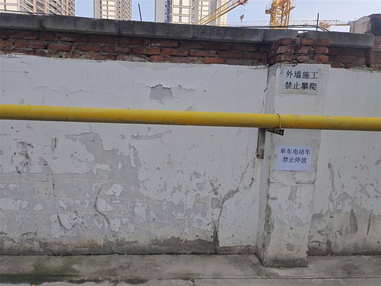 (B)开裂10米的围墙打着支架危及燃气管谈体育游戏app平台,施工单元被责令修缮摒除隐患