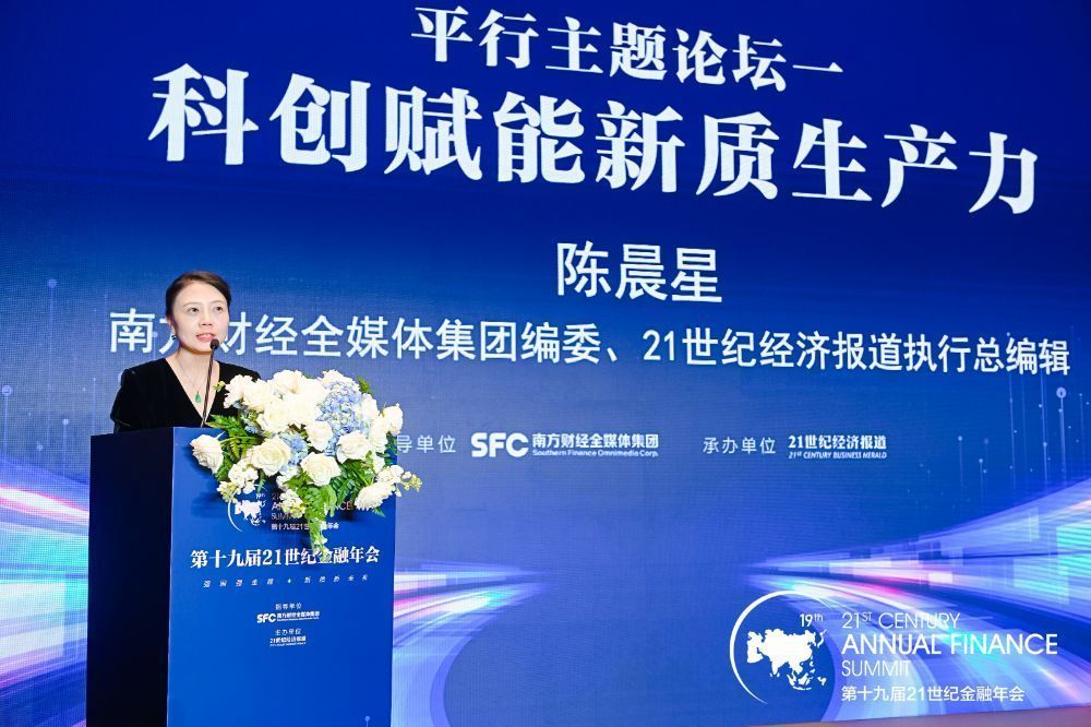 11月9日,由南边财经全媒体集团开采、21世纪经济报说念掌握的第十九届21世纪金融年会在北京举行。本日地午,南边财经全媒体集团编委、21世纪经济报说念履行总裁剪陈晨星在以“科创赋能新质坐褥力”为主题的平行论坛上代表掌握方致辞。