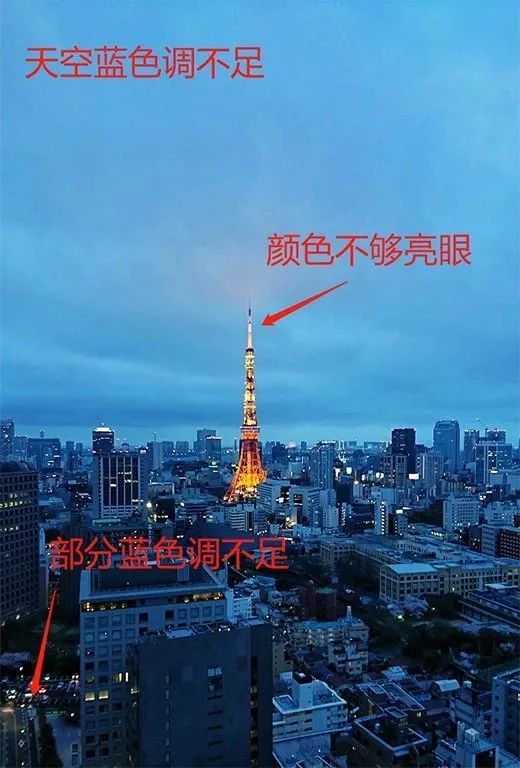 当今相片的问题是,晴空塔的神采不够,主体不隆起;太空的蓝色色调不够“浮松”: